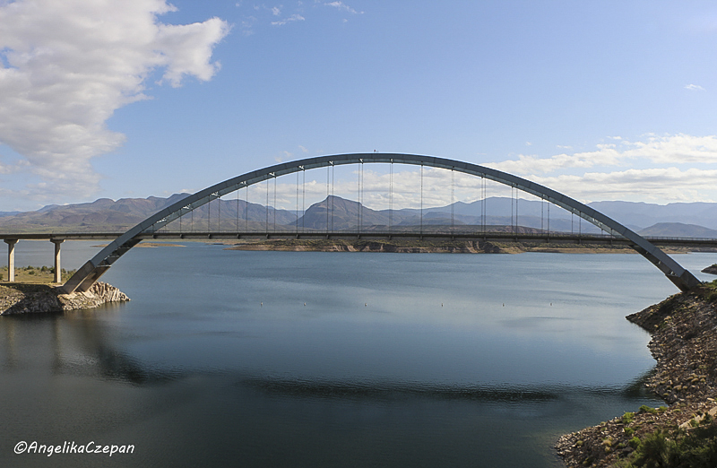 Der 1903 begonnene und 1911 fertig gestellte Roosevelt Staudamm war einst der größte gemauerte Staudamm der Welt. In einem Großprojekt wurde er von 1989 bis 1996 in einen reinen Betonstaudamm umgebaut und auf eine Höhe von 107 Metern erweitert. Damit erhöhte sich auch das Vorratsvolumen des Roosevelt Stausees um 20 Prozent. Neben der Wasserversorgung dient der Staudamm der Elektrizitätsgewinnung. Unmittelbar östlich des Staudamms zweigt nach links ein Sträßchen ab zum Inspiration Point mit Parkplatz und Picnic Area. Von hier bietet sich ein wunderschöner Blick auf die eindrucksvolle Roosevelt Bridge, eine 1992 erbaute Stahlkonstruktion mit einer Länge von fast 700 Metern.