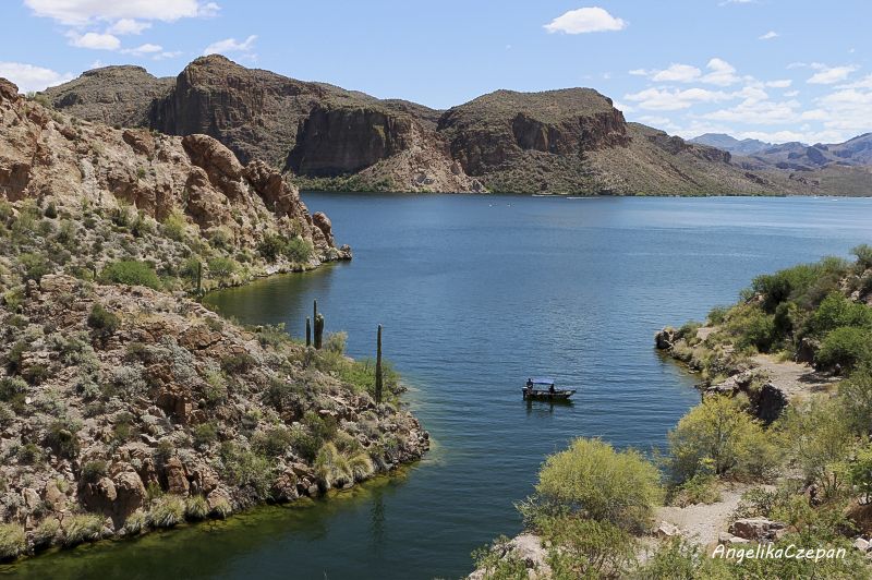 Es folgt die Palo Verde Recreation Site (für Boote) und dann die Boulder Recreation Site (für Angler). Gleich dahinter überquert man auf einer weiteren Brücke den La Barge Creek und gelangt dann zur Canyon Lake Marina mit großem Parkplatz, Liegewiese, Restaurant und Bootshafen. Hier kann man stunden- oder tageweise kleinere Motorboote, Jetskis oder Waverunner mieten oder bei Dolly's Steamboat (www.dollysteamboat.com) eine Ausflugsfahrt mit einem alten Schaufelraddampfer über den See buchen. Wer lieber wandern möchte, gelangt über den Boulder Canyon Trail zu einer Reihe schöner Viewpoints oberhalb des Sees.