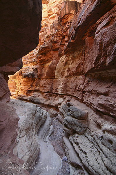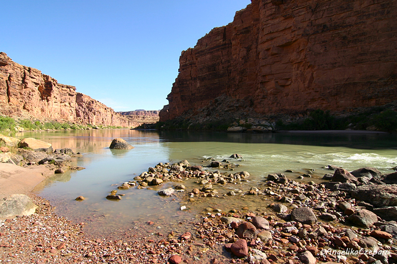 Nach dieser äußerst spannenden und abwechslungsreichen Wanderung durch die immer schmaler und tiefer werdende Felsenschlucht weichen die Canyonwände langsam zurück, zwischen riesigen Felsblöcken geht es nun das letzte Stück dem sandigen und steinigen Pfad folgend bis zum Ufer des Colorado, ein herrlich abgelegener Ort, die Luft frisch und kühl, das smaragdgrüne Band des Flusses eingerahmt von dunkelroten Felswänden - der perfekte Ort, um einfach nur kurz die Füße abzukühlen oder vor dem Rückweg eine längere Badepause einzulegen. Schönste Tageszeiten für diese Wanderung sind aufgrund der optimalen Lichtverhältnisse und des besonders im Hochsommer angenehmen Schattens entweder der frühe Morgen oder der späte Nachmittag.