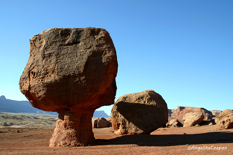 An der 5 Meilen langen geteerten Zufahrtsstraße zur Picknick Area und zum Campground befinden sich auf der linken Straßenseite zwei Parkbuchten mit schönen Blicken auf die rötlich gefärbten Felswände auf der Westseite des Tals und eine Serie riesiger Felsblöcke, die auf schmalen Sockeln thronen und so aussehen, als könnten sie jeden Moment umfallen. Am Viewpoint ‚Disappearing Rock' beginnt auch die schöne Wanderung durch den Cathedral Wash.