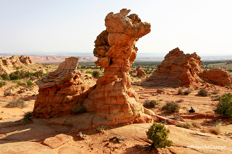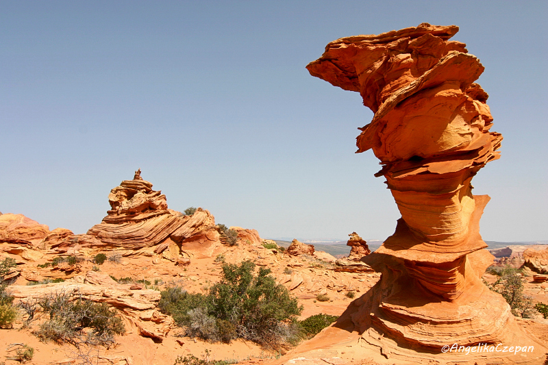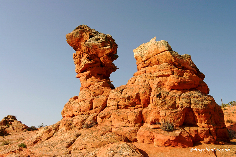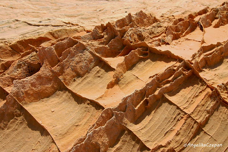 Die bekannteste dieser Figuren ist der Weird Rock, auch als Dali-Rock bekannt (CBS02). Ebenfalls sehr beeindruckend ist die ‚Queen', eine mehrere Meter hohe, schlanke Felssäule, die sich in einem etwas kleineren Felsengebiet nordöstlich des Parkplatzes befindet. Während der Wanderung sollte man übrigens immer darauf achten, die vielen wunderschönen, aber äußerst dünnen und zerbrechlichen Sandsteinschichten und -plättchen nicht zu zerstören, die für das Gebiet der Coyote Buttes South so typisch sind.