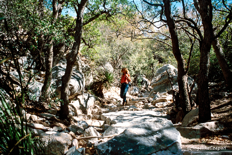 Die landschaftlich reizvolle Wanderung führt durch typische Wüstenvegetation mit Mescal Agaven, Sotol, Wacholderbäumen und Kakteen erst mäßig, später steil bergauf. Nach dem letzten kurzen Anstieg über mehrere Steintreppen, der durch den Schatten großer Bäume nicht mehr ganz so schweißtreibend ist, steht man ziemlich unvermittelt vor dem recht kleinen Höhleneingang aus übereinander geschachtelten Felsblöcken. Der Abstieg in die Höhle ist nicht ganz einfach und erfordert ein wenig Klettergeschick. Auf jeden Fall sollte man vorsichtig sein und beide Hände frei haben, denn es gibt keinerlei Sicherung oder Beleuchtung.