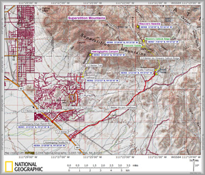 Lage: südöstlich von Phoenix/Apache Junction auf der Westseite der Superstition Mountains
