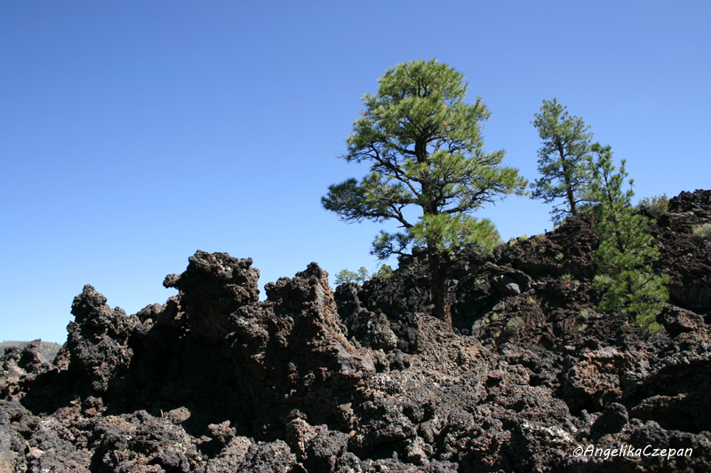 Vom Visitor Center führt die Straße durch dichte Kiefernwälder bis zum Parkplatz und Trailhead für den 1,5 Meilen langen Lava Flow Trail. Während dieser landschaftlich sehr abwechslungsreichen und interessanten Wanderung gelangt man zu Stellen, an denen die Lava aus Rissen im Erdinnern mehrere Meter hoch empor gequetscht wurde, zu kleineren Kratern und zum Eingang eines etwa 70 Meter langen Lavatunnels. Solche Lavaröhren entstanden, als die Oberfläche der Lavaströme abkühlte und erstarrte, während die heiße Lava im Innern mit hoher Geschwindigkeit weiterfloss. Im Innern dieser Höhle sammelt sich im Winter Eis, das wegen mangelnder Luftzirkulation meist erst im Juli zu schmelzen beginnt. Im Frühjahr blühen zwischen den dunklen Lavasteinen zahlreiche schöne Wildblumen.