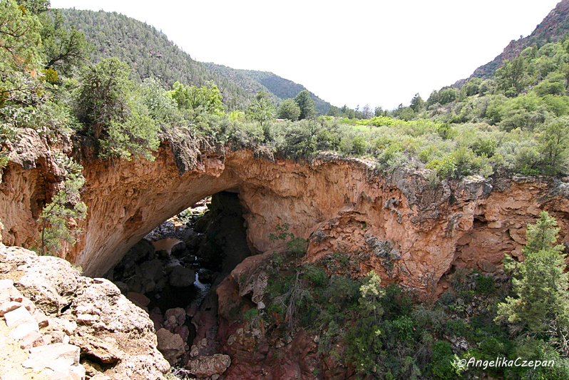 In der angenehm kühlen und bewaldeten Berglandschaft der Mazatzal Mountains am Mogollon Rim zwischen Payson und Sedona befindet sich ein kleiner State Park, dem man unbedingt einen kurzen Besuch abstatten sollte. Ausgehöhlt von den Fluten des Pine Creek überspannt die Tonto Natural Bridge, eine riesige Kalksinterbrücke mit wunderschön reliefartig ziselierten Wänden den darunterliegenden Canyon. Um den Park in Ruhe genießen zu können, sollte man einen Besuch möglichst nicht auf ein Sommerwochenende legen. Durch seine gute Erreichbarkeit und seine Nähe zur Großstadt Phoenix ist er nämlich auch ein beliebtes Familien-Ausflugsziel.