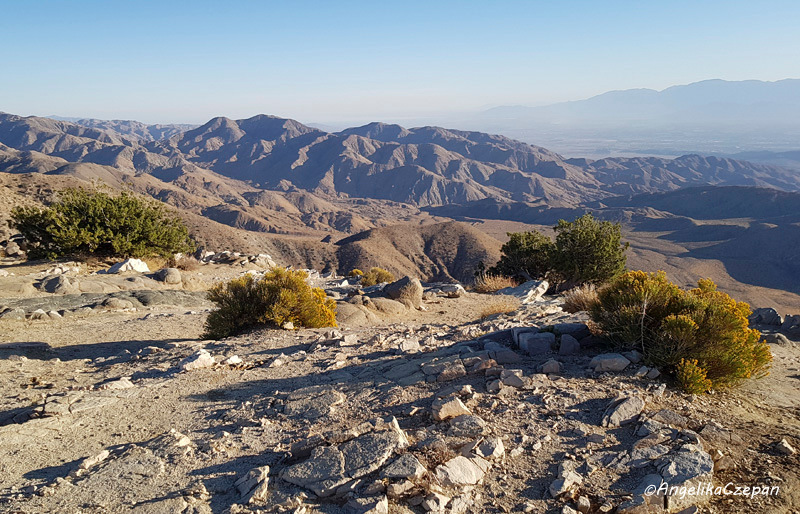 Die schönste Lichtstimmung hat man allerdings, wenn man den Park Boulevard am späten Nachmittag am nordwestlichen Eingang beginnt, denn dann hat man die Sonne während der Fahrt im Rücken und die Felsen leuchten warm in der Abendsonne. Den Sonnenuntergang kann man denn bei Keys View genießen, einem hoch gelegenen Aussichtspunkt, den man über eine Stichstraße vom Park Boulevard aus erreicht. Hat man im Park übernachtet, kann man dann am nächsten Morgen den Ostteil des Park Boulevard erkunden und über den Cholla Cactus Garden den Park nach Süden verlassen.