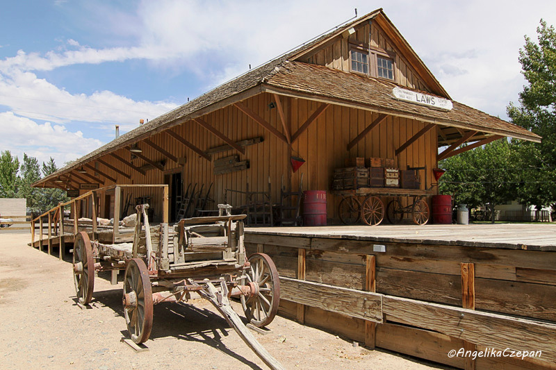 1883, als die Gleise der C & C Railroad den Ort von Norden kommend erreichten, gab es in Laws neben dem eigentlichen Eisenbahndepot bereits einige Verwaltungsgebäude, einen Wassertank und eine Drehscheibe zum Rangieren der Loks. Es folgten Wohnhäuser, Lagerhallen, Scheunen und Ställe, aber auch all die anderen Gebäude, die zu einer damaligen Railroad Town gehörten - zwei General Stores, ein Barber Shop, ein Hotel, eine Herberge, ein Post Office, eine Schmiede, Lagerhallen, ein Pulvermagazin, eine Badeanstalt, eine Tanzhalle und ein Bordell.