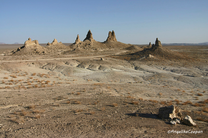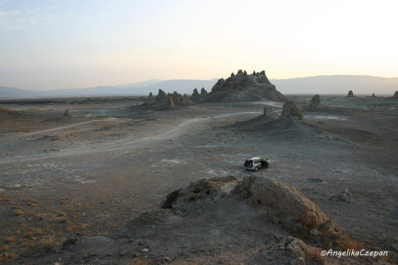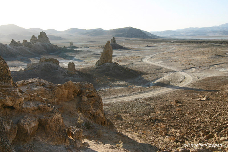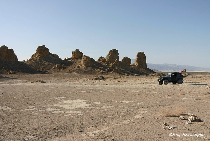 Der Abstecher zu den Trona Pinnacles ist nicht ganz unproblematisch, da besonders der letzte Teile der Zufahrtspiste übersät ist mit spitzen, scharfkantigen Steinen und Felszacken, die aus dem Boden ragen und im Nu zu einem platten Reifen führen können. Das heißt, je neuer die Reifen und je dicker das Reifenprofil, umso besser. Geländewagen haben meist etwas dickere Cross-Terrain Reifen, noch besser ist natürlich ein Jeep. Um für einen Reifenwechsel vorbereitet zu sein, sollte man auf jeden Fall VOR der Fahrt in dieses Gebiet einen Blick in das Owners Manual werfen und neben dem Ersatzreifen auch das Werkzeug überprüfen, denn Hilfe ist hier draußen kaum zu erwarten.