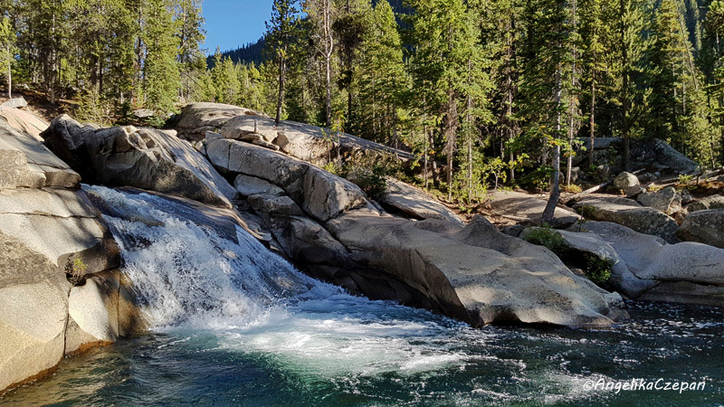 Geht man vom Parkplatz über die Brücke geradeaus, gelangt man zu den Ice Caves, vom Wasser ausgehöhlte Granitfelsen, in die man mit etwas Geschick hinab klettern kann. Hier hält sich das Eis des Flusses oft bis weit in den Juli hinein. Danach geht man links am Ufer des Roaring Fork River entlang und gelangt so ebenfalls zu den Kaskaden. Hier kann man auf den glatt polierten Granitfelsen ein Sonnenbad nehmen und sich anschließend im kalten Wasser des Gebirgsbachs abkühlen.