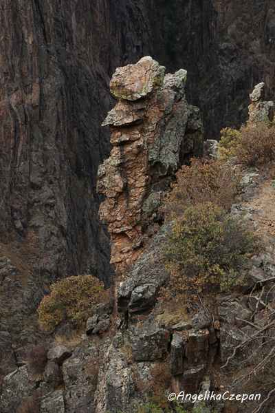 Der Black Canyon ist eine enge, vom Gunnison River tief eingegrabene Schlucht mit steil abfallenden dunklen Felswänden, auf deren Grund selbst um die Mittagszeit kaum ein Sonnenstrahl vordringt. Einen Blick in diese beeindruckende Tiefe hat man von verschiedenen Aussichtspunkten am North Rim und am South Rim. Obwohl an der engsten Stelle nur 335 Meter Luftlinie voneinander entfernt, benötigt man mit dem Auto gut zwei Stunden, um von einer Seite auf die andere zu gelangen. Wege hinunter zum tosenden Gunnison River gibt es nur wenige, meist handelt es sich dabei um nur selten begangene Backcountry Trails, die extrem steil und nicht ganz ungefährlich sind. Die fast 700 Meter hohe Painted Wall am North Rim gehört zu den anspruchsvollsten und schwierigsten Kletterwänden der Vereinigten Staaten.