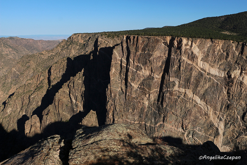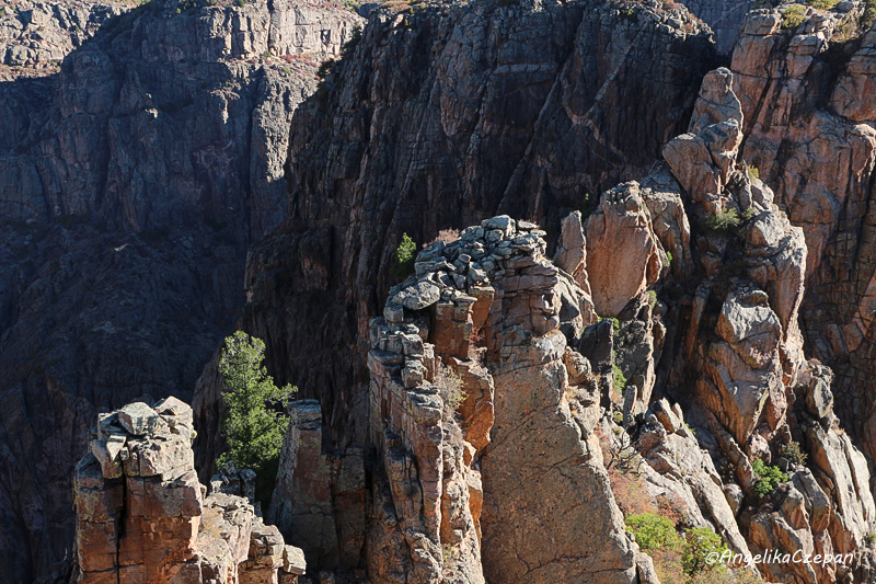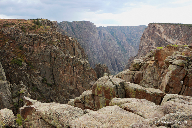 Geht man weiter am Canyonrim entlang, gelangt man zum Chasm View, einem Aussichtspunkt mit tollem Blick in die nach Süden abknickende Canyonschlucht und auf die 684 Meter hohe Steilwand der Painted Wall. Das dunkle, fast schwarze Gestein des Canyons (Gneis und Schist) ist bei dieser Wand mit hellen Adern aus Pegmatit durchzogen, was zu einer interessanten und sehr fotogenen Musterung führt. Unter Kletterern, die versuchen, diese Steilwand zu bezwingen, ist diese Gesteinskombination allerdings berühmt-berüchtigt aufgrund ihrer extremen Brüchigkeit. Chasm View und die Painted Wall lassen sich am besten am Morgen fotografieren.