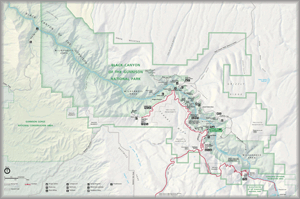 Wer im Canyon übernachten möchte, findet entlang dem Fluss einfache Übernachtungsplätze. Holzfeuer sind im Canyon allerdings verboten. Das Flusswasser ist trinkbar, muss aber vor der Verwendung chemisch gereinigt oder abgekocht werden. Besser ist es, selbst genügend Trinkwasser mitzunehmen (mindestens 4 Liter pro Person und Tag). Besondere Vorsicht ist in Flussnähe und an den nördlichen Routen geboten. Hier wächst an vielen Stellen der Poison Ivy, eine Pflanze mit giftigen Blättern, die äußerst schmerzhafte allergische Hautreaktionen hervorrufen kann.