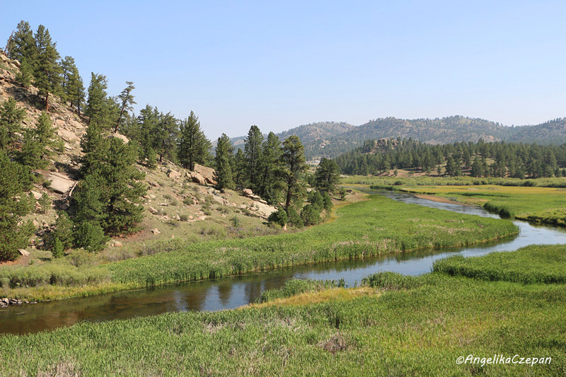 Im weiteren Verlauf wird der Canyon breiter und auch der South Platte River hat nun mehr Platz, um sich über das Tal mit seinen Wiesen auszubreiten. Hier sieht man immer wieder Fliegenfischer, die bis zu den Hüften im Wasser stehen und ihre Angelruten gekonnt durch die Lüfte schwingen, um sich die Forellen für abendliche Lagerfeuer zu fangen. Da das Tal nun breit genug ist, trifft man jetzt auch immer wieder auf Picknickplätze und Campgrounds, die teilweise in der Nähe des Bachs, teilweise etwas versteckter im Wald liegen.