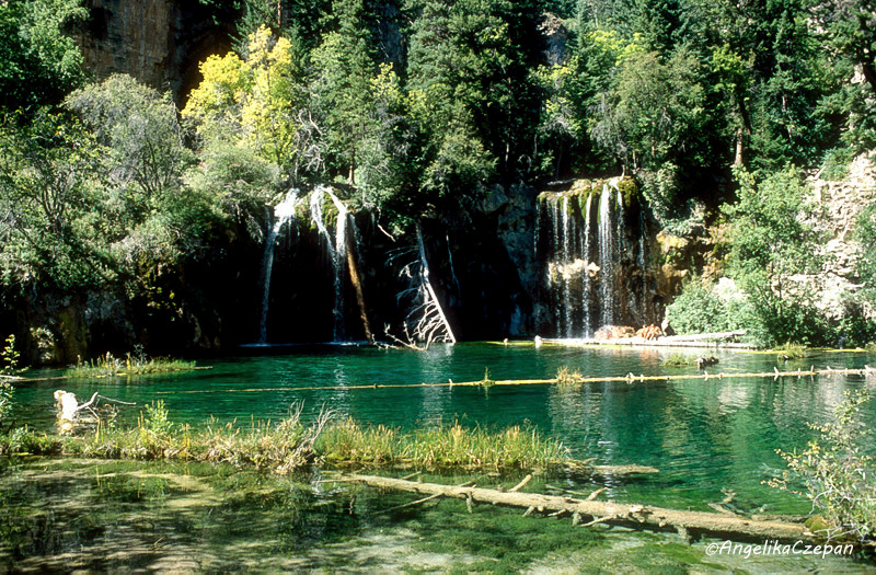 Eine kurze, aber recht anstrengende Wanderung führt von einer kleinen Rest Area an der I-70 durch eine tief eingeschnittene Seitenschlucht des Glenwood Canyon über Stock und Stein steil bergauf bis zum türkisfarbenen Hanging Lake, einem traumhaft klaren See, eingerahmt von hohen Felsklippen, reizvollen Wasserfällen und dem üppigen Grün hängender Moose und Farne. Leider ist der See inzwischen sehr bekannt und auch entsprechend stark frequentiert. Daher sollte man sich für diese schöne Wanderung möglichst kein Wochenende aussuchen.