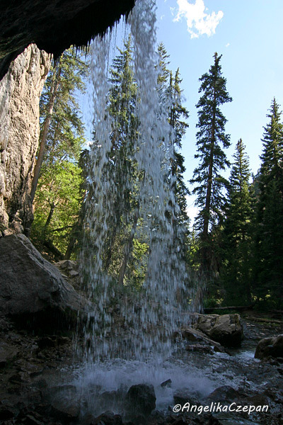 Nur wenige Besucher des Sees scheinen zu wissen, dass es etwas oberhalb des Hanging Lake noch eine weitere Naturattraktion gibt, den Spouting Rock. Der Weg dorthin zweigt kurz vor dem See nach links ab und führt dann etwa 200 Meter leicht bergauf zu einer hohen Felswand, oberhalb derer das Wasser des Dead Horse Creek versickert, um anschließend aus einer runden Öffnung mitten im Fels wieder als Wasserfontäne hervor zu schießen. Besonders beeindruckend ist dieses Naturschauspiel im Winter, wenn der Wasserfall riesige Eiszapfen bildet und im späten Frühjahr, wenn das Wasser mit gewaltiger Wucht aus der Felsöffnung strömt. Weniger gut sichtbar ist dieser Effekt unmittelbar nach der Schneeschmelze, wenn der Bach sehr viel Wasser führt und das Wasser auch oben über die Felskante fließt.