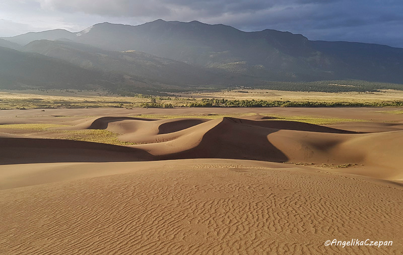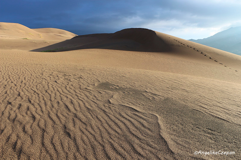 Für schöne Fotos der Dünenlandschaft mit ihren feinen Strukturen und Linien sollte man möglichst früh am Morgen unterwegs sein, bevor das Licht zu grell wird und die unberührten Sandflächen von unzähligen Fußspuren überzogen sind. Im Sommer, wenn es tagsüber in den Dünen zu heiß ist, kann man auch gleich am Ufer des Medano Creek seine Schuhe ausziehen und barfuß durch das feinsandige und erfrischend kühle Bachbett am Rande des Dünengebiets entlang schlendern - ein herrlich sinnliches Erlebnis mit tollem Blick auf die hellen Berge aus Sand auf der einen Seite und die Berge der Sangre de Christo Range auf der anderen Seite.