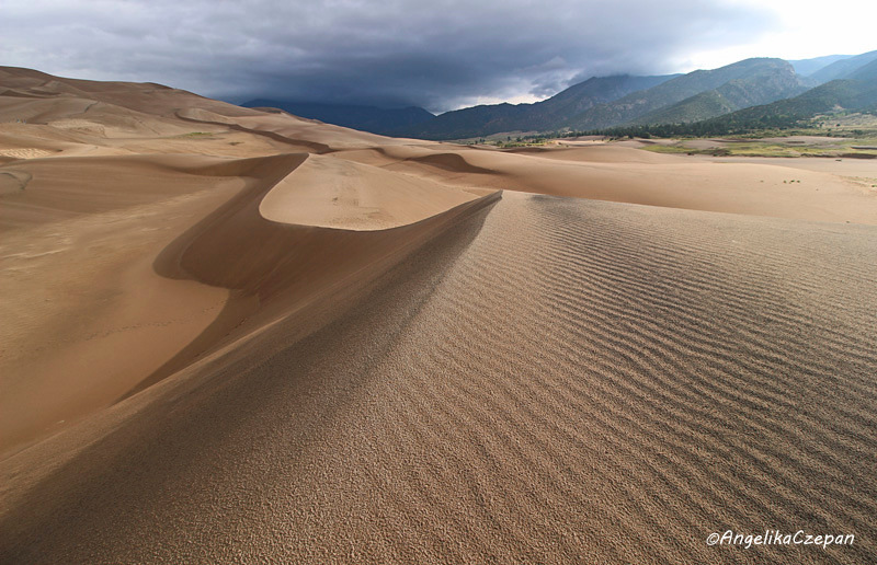 In den Great Sand Dunes findet man die höchsten Dünen Nordamerikas. Ihre Bildung unterliegt einem ständigen Kreislauf, in dem sowohl der Wind als auch das Wasser der Flüsse eine entscheidende Rolle spielt. Begrenzt wird das San Luis Valley, in dem sich die Dünen befinden, von zwei hohen Gebirgszügen - den San Juan Mountains im Westen und den Sangre de Christo Mountains im Osten. Von beiden wurden im Laufe von Jahrmillionen Sedimente ins Tal gewaschen. Das Wasser dieser Bäche und Flüsse bildete zunächst einen riesigen See - von Geologen Lake Alamosa genannt - der durch Klimaveränderung langsam austrocknete und eine riesige Fläche mit feinem Sand zurückließ. Dieser Sand wurde und wird auch noch heute von den vorherrschenden westlichen Winden in Richtung der Sangre de Christo Mountains geblasen und zu Füßen dieser Gebirgskette abgelagert. Von dieser Seite wiederum blasen jedoch in unregelmäßigen Abständen heftige Stürme den Sand in die andere Richtung, was zur Bildung der steilen Dünen führt. Der Sand auf dem Kamm der Dünen wird schließlich wieder vom Wind in Richtung der Berge geweht und dort mit dem Wasser der Flüsse ins Tal geschwemmt, wo der Kreislauf von Neuem beginnt.