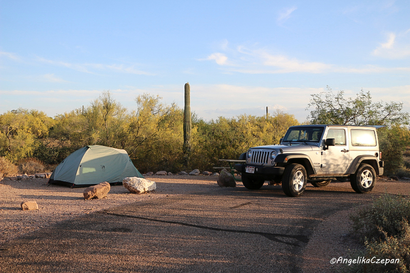 Anders als im meist sehr dicht besiedelten Europa ist das Campen in den USA sehr viel naturnäher und entspannter. Das kommt daher, dass die Campgrounds außerhalb der Städte meist sehr schön in die Natur eingebettet sind und dass die einzelnen Campsites sehr viel großzügiger bemessen sind als bei uns. Dadurch hat man sehr viel Platz und bekommt von eventuell vorhandenen Nachbarn kaum etwas mit. Ausgestattet sind die einzelnen Plätze mit einer Feuerstelle und/oder einem Holzkohlegrill sowie einem großem Tisch mit Bänken. In sehr heißen Gegenden befindet sich über dem Tisch oft zusätzlich ein Sonnen- oder Windschutzdach (Ramada).
