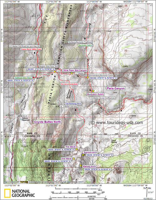 Karte Buckskin Gulch / The Wave