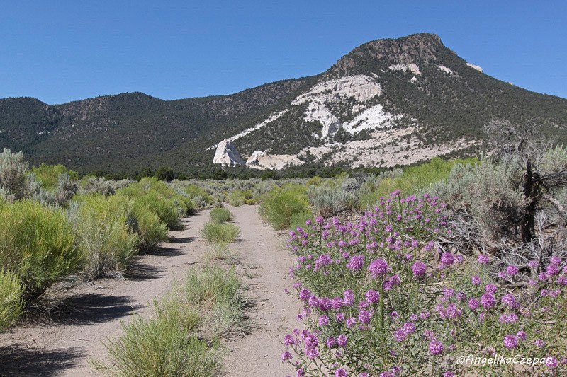Dieser Weg ist zu Beginn noch recht breit, wird aber im weiteren Verlauf zusehends schmaler. Schließlich führt er durch ein Kiefern- und Juniperwäldchen, wobei die Äste der Bäume stellenweise so weit auf den Weg ragen, dass man leicht das Auto zerkratzt. Die gleiche Gefahr besteht beim Unterboden, denn der Mittelstreifen des Wegs ist mit hohen, struppigen Salbeibüschen bewachsen. Wer also nicht gerade mit einem Jeep unterwegs ist, sollte sein Fahrzeug lieber kurz hinter der Abzweigung stehen lassen und die halbe Meile bis zur Wilderness Boundary zu Fuß gehen.