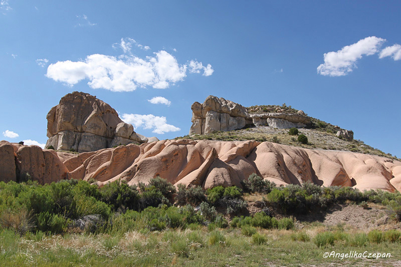 Dafür warten gleich hinter dem See wieder neue landschaftliche Eindrücke, denn es tauchen die ersten zartrosa gefärbten Puddingfelsen auf. Was auf den ersten Blick aussieht wie ein Teil von Disneyland sind kleine Felseninseln aus weichem, vulkanischem Tuffgestein, das vom Wind rund geschliffen und an vielen Stellen vom Regen ausgewaschen durchlöchert wurde wie ein Schweizer Käse - ein ungewöhnlicher Anblick selbst in dem an Naturwundern so reichen Südwesten.