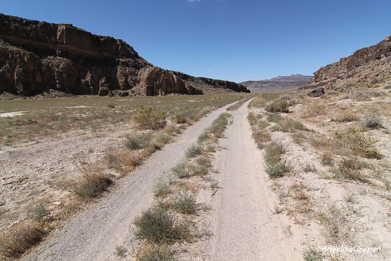 Von der Kreuzung der Highways 318 und 93 fährt man auf dem Highway 318 Richtung Norden bis Milemarker 23. Ein paar hundert Meter weiter zweigt nach rechts (Osten) eine Dirt Road ab, die allerdings nicht besonders ausgeschildert ist, man muss also ein wenig aufpassen (WHITE01). Diese Dirt Road überquert zunächst ein Viehgatter und führt dann relativ eben durch das gesamte Canyongebiet. Bis auf einen etwas steinigen Hügel gleich zu Beginn ist dieser Weg relativ problemlos befahrbar. Vom Beginn des Wegs bis zum letzten Stopp am Amphitheater sind es etwa 2,5 Meilen one-way, so dass man die Tour auch sehr schön als Wanderung durchführen kann.