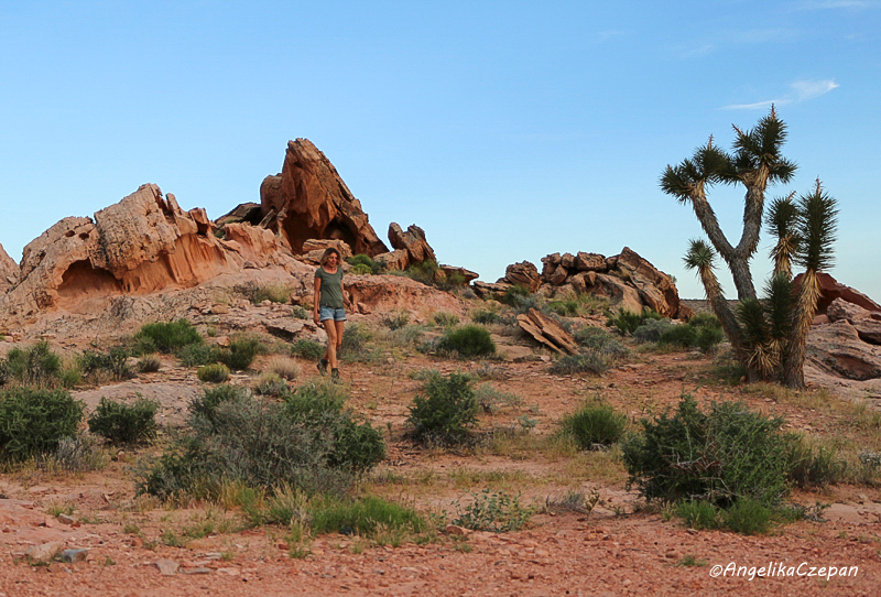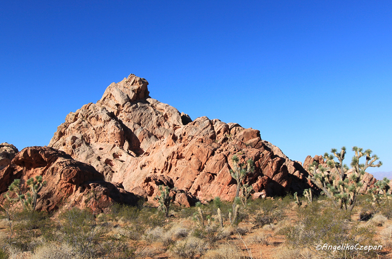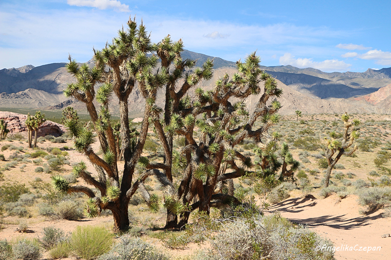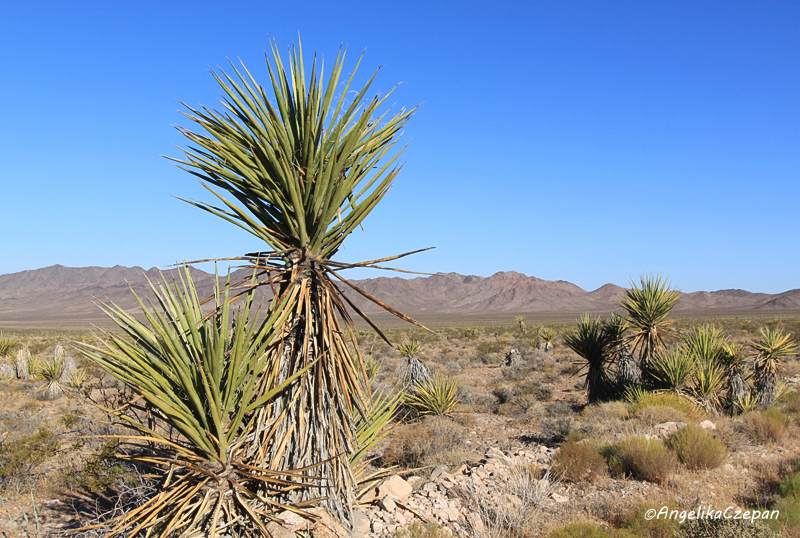 Von hier aus kann man nun auf gleichem Weg zum Parkplatz zurück kehren oder man geht querfeldein nach Westen bis zur ungeteerten Black Butte Road und wandert auf dieser nach Norden zum Parkplatz zurück. Dabei kommt man an einem kleinen Hain schöner alter Joshua Trees vorbei, die besonders in den späten Abendstunden ein schönes Fotomotiv ergeben.