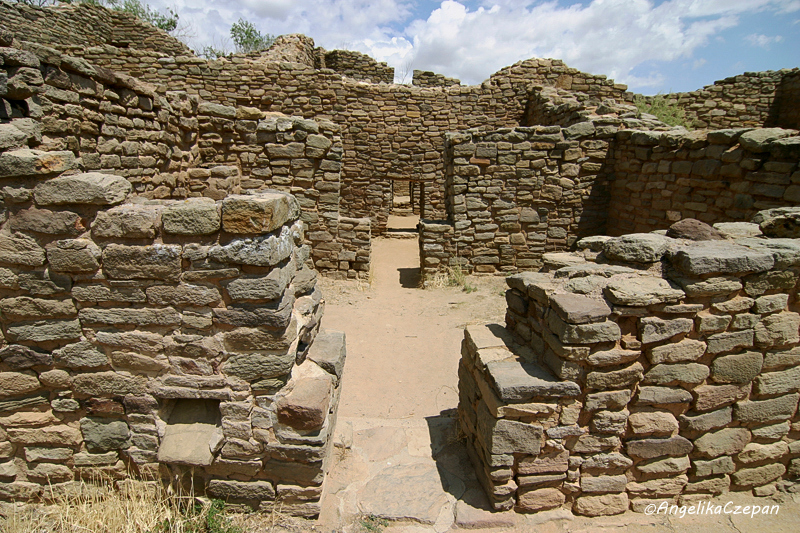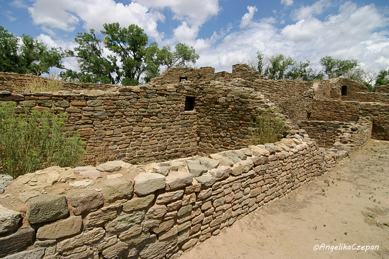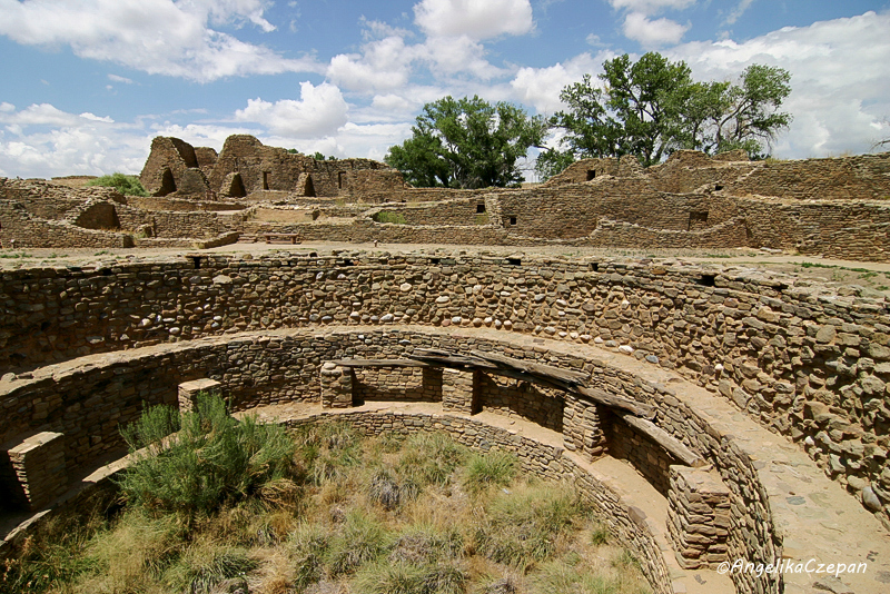 Der etwas irreführende Name Aztec Ruins stammt von den ersten weißen Siedlern in der Region, die der Meinung waren, die Ruinen stammten von den Azteken Mexikos. Aus dem gleichen Grund gaben sie auch der Stadt, die sie gründeten, den Namen Aztec. In Wahrheit wurde das große dreistöckige West Pueblo, das man heute auf einem Rundgang ausgiebig erkunden kann, im 12. Jahrhundert von den Anasazi erbaut, einer frühen indianischen Pueblokultur. Dabei sind sowohl in der Architektur als auch in der Art der Keramik starke Einflüsse aus dem südlich gelegenen Chaco Canyon erkennbar. Im Zentrum der rechteckigen Anlage, die aus etwa 400 Räumen bestand, befand sich eine große Kiva, die als gemeinschaftlicher Zeremonialraum diente und 1934 vollständig restauriert wurde.