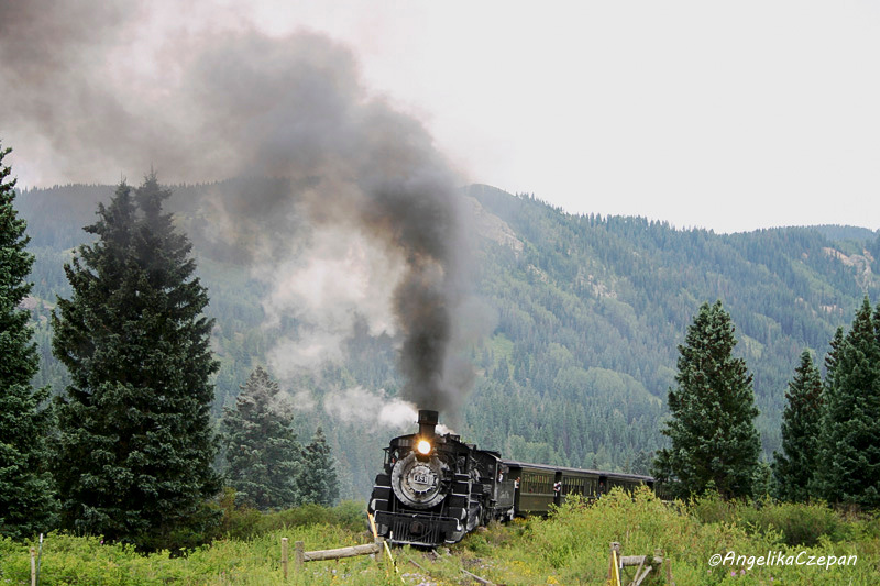 Nach dem Zwischenstopp in Osier geht die Fahrt dann hinauf in die Berge und über den 3.052 m hohen Cumbres Pass. Unterwegs passiert man zwei Tunnels von 110 und 106 Metern Länge sowie zwei Brücken. Von Antonito bringen komfortable Reisebusse die Reisenden dann in etwa einer Stunde wieder zurück nach Chama. Neben dieser Standardtour gibt es verschiedene andere Varianten, z.B. nach Osier und zurück mit dem Zug oder one-way nach Antonito. Es ist auch möglich, die Zugfahrt nicht in Chama, sondern in Antonito zu beginnen.