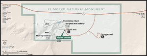 Der Tafelfelsen aus hellgelbem Sandstein, von den Spaniern ‚El Morro' und von den Amerikanern ‚Inscription Rock' genannt, liegt an einem alten indianischen Handelsweg zwischen den Pueblos von Zuñi und Ácoma. Das mit Regen- und Schmelzwasser gefüllte Wasserbecken im Schatten des Felsens war jahrhundertelang die einzige Wasserstelle im Umkreis von 30 Meilen und damit gut als Rast- und Siedlungsplatz geeignet.