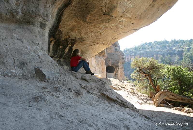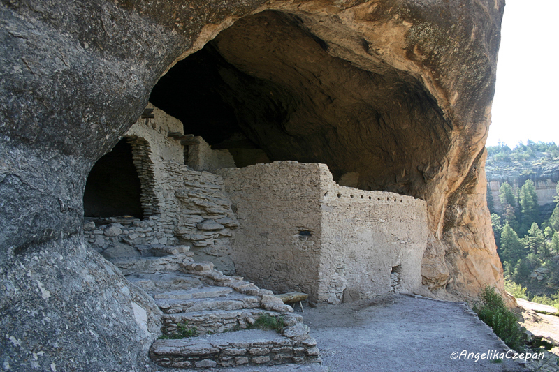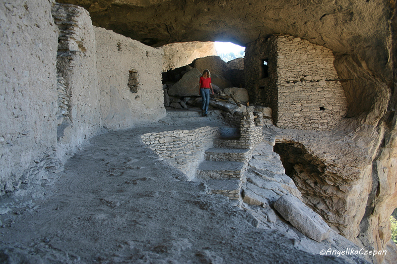 Der Rundweg von einer Meile zu den Gila Cliff Dwellings beginnt am Ende des Highway 15 bei der Trailhead Contact Station, etwa 1½ Meilen westlich des Visitor Center am Ufer des Gila River. Dies ist gleichzeitig der Ausgangspunkt für die Canyonwanderung entlang der Gila West Fork. Nachdem man bei einer Self-Pay Station die Gebühr für den Trail entrichtet hat, überquert man zunächst den Bach und steigt dann durch den Wald kurz steil bergauf bis zum Fuße der langgezogenen Felswand, in der sich wie Schwalbennester die in die Höhlenöffnungen gemauerten Pueblos befinden. Die gesamte Anlage besteht aus 5 natürlichen Felshöhlen mit insgesamt 40 gemauerten Räumen. Erbaut wurden diese Cliff Dwellings im späten 12. Jahrhundert. Sie dienten etwa 10 bis 15 Familien als Wohn- und Vorratsräume. Beste Tageszeit für Fotoaufnahmen von den Klippenpueblos ist der späte Nachmittag, wenn die tiefstehende Sonne direkt auf die Felshöhlen scheint.