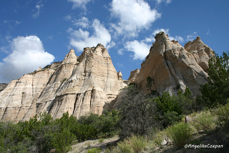 Erschlossen wird das geologische Wunderland der Tent Rocks durch zwei Wanderwege, den 1,2 Meilen langen Cave Loop, der in einem großen Bogen an den Felsen entlang und dann wieder zurück zum Parkplatz führt, sowie den weitaus interessanteren und spektakuläreren Canyon Trail. Beide Wege lassen sich auch schön zu einer längeren Rundwanderung verbinden.