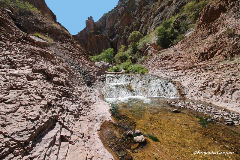 Dort, wo der Canyon sich stark verengt, muss man auch längere Zeit direkt im Bachbett wandern, was allerdings kein großes Problem darstellt, da das Wasser (außer während der Schneeschmelze im Frühjahr und nach ergiebigen Regenfällen im Sommer) meist nur knöcheltief ist. Trotzdem sollte man aufgrund der glitschigen Steine und der vielen Bachüberquerungen auf gutes Schuhwerk mit rutschfesten Profilsohlen achten.
