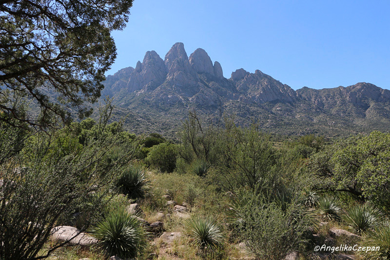 Von den beiden Wanderwegen ist vor allem der Pine Tree Loop Trail zu empfehlen. Er beginnt wahlweise am Campsite No. 24 des Aguirre Springs Campgrounds oder am offiziellen Parkplatz und Trailhead an der Loop Road. Von hier klettert der Pfad zunächst über sandige Stufen leicht bergauf bis zu einem Gatter. Dahinter teilt sich der Weg und der Loop Trail beginnt. Geht man diesen im Uhrzeigersinn (an der Abzweigung links), hat man während des anstrengenden Aufstiegs etwas mehr Schatten. Der Weg selbst folgt einem ausgewaschenen Canyon stetig bergauf, vorbei an mehreren gewaltigen Felsblöcken und skurril verdrehten Alligator Junipers. Etwa auf halber Höhe bieten sich beeindruckende Blicke hinunter ins Tal und auf die weite Ebene des Río Grande Valley. Auf dem höchsten Punkt am sogenannten Halfway Point angekommen wendet sich der Pfad schließlich nach rechts und führt dann am Fuße der Felsen entlang in großem Bogen wieder hinunter ins Tal.