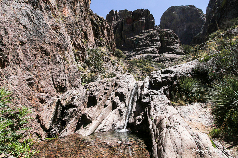 Dripping Springs ist ein tief in die Westflanke der Organ Mountains eingeschnittenes Tal mit einem Bachlauf, der von einer Quelle hoch in den Bergen gespeist wird. Nach ausgiebigen Regenfällen ergießt sich dieser Bach in Kaskaden über die Felskanten und sorgt so zusammen mit den vielen Schatten spendenden Bäumen und Sträuchern für ein erfrischend kühles Klima. Mehr als 800 Pflanzenarten gedeihen hier - von Lecheguilla Agaven, Yukkas, Kakteen und vielerlei Wildsträuchern bis zu Mesquite Trees, Alligator Junipers, Wacholder- und Eichenbäumen. Nach ausgiebigen Regenfällen im Winter sind die Berghänge übersät mit goldgelb blühenden Mexican Puppies.