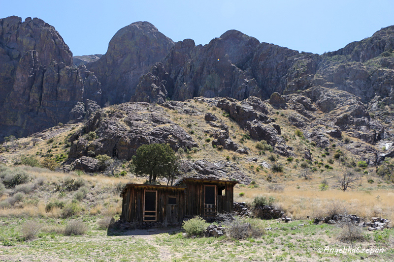 Vom Visitor Center führt der Wanderweg zunächst durch eine offene, mit Kakteen und Agaven bewachsene Wüstenlandschaft in gleichmäßiger, leichter Steigung bergan. Nach 0,8 Meilen gelangt man zu einem Wegweiser. Hier trennen sich die Wege. Geradeaus geht es weiter Richtung Dripping Springs, nach links zum Crawford Trail und in den Fillmore Canyon. Ein kurzes Stück weiter macht der Weg einen großen Bogen nach links in Richtung der Berge und in ein Tal hinein, das von hohen, schroffen Felsen überragt wird. Hier stößt man nun auf die ersten schon halb verfallenen Blockhütten der ehemaligen Siedler.