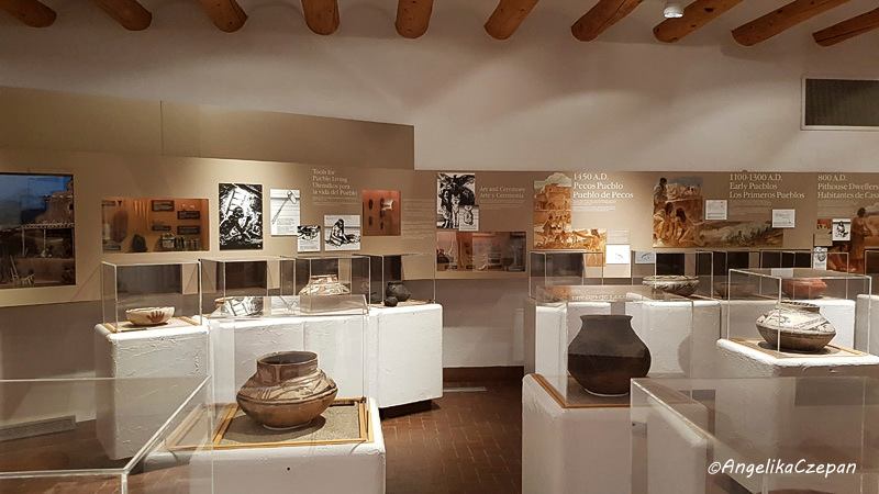 Das im Pueblostil erbaute Visitor Center mit schönen gedrechselten Holzbalken und Türen beherbergt einen kleinen Buchladen und ein liebevoll gestaltetes Museum, in dem die wechselvolle Geschichte von Pecos erläutert wird. Zu sehen sind verschiedene Fundstücke aus dem Pueblo wie Werkzeuge, Gebrauchsgegenstände, Pfeilspitzen, Keramik, Schmuck und Flöten. Sehenswert und sehr informativ ist auch der 25 Minuten dauernde Film. Für den landschaftlich sehr schönen Rundweg kann man sich im Visitor Center einen Trailguide in deutscher Sprache ausliehen.