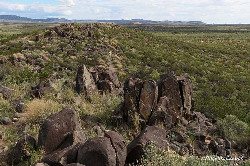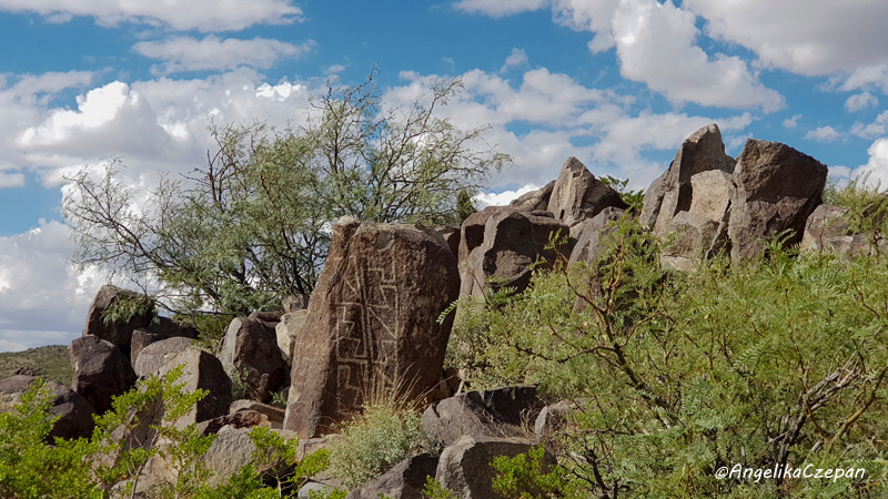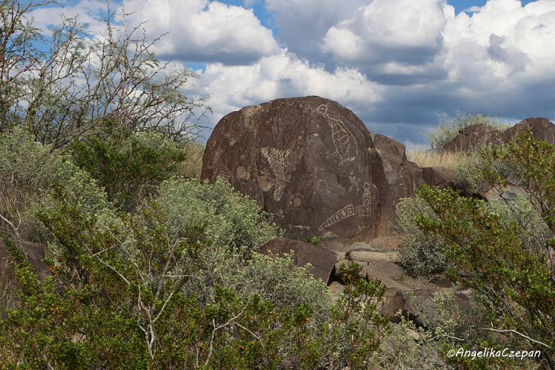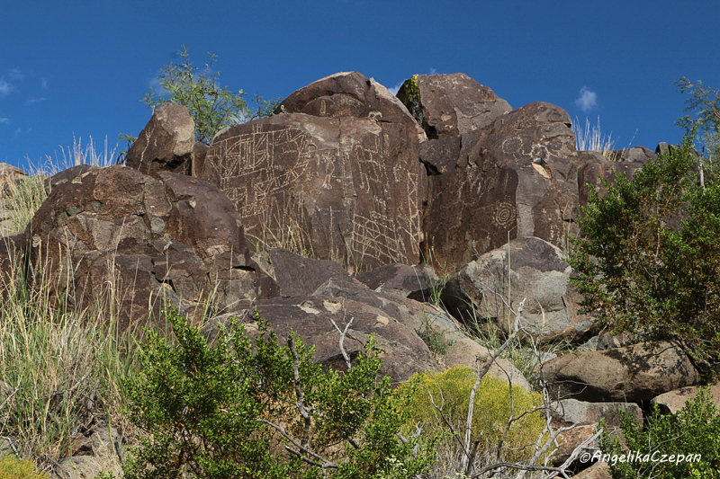 Gegenüber der ehemaligen Siedlung von Three Rivers erstreckt sich ein Gebiet mit mehreren Hügeln, die von unzähligen dunkel glänzenden Basaltfelsen bedeckt sind. Unterhalb dieser schwarzen Oberfläche, die den Stein wie eine Patina überzieht, ist der Fels wesentlich heller, so dass er sich hervorragend als 'Zeichenmaterial' eignet. Archäologen schätzen, dass im gesamten Gebiet etwa 21.000 Petroglyphen zu finden sind.Viele der Darstellungen sind bis heute sehr gut erhalten und im Gegensatz zu anderen Orten mit Felszeichnungen frei zugänglich. Damit dies so bleibt, sollte man bei der Wanderung durch das Gelände und der Suche nach den Petroglyphen etwas vorsichtig sein, um nicht unwissentlich etwas zu zerstören. Vor allem aber sollte man nie eine der Felszeichnungen mit der Hand berühren, da der Schweiß der Hände eine chemische Zersetzungsreaktion bewirkt.