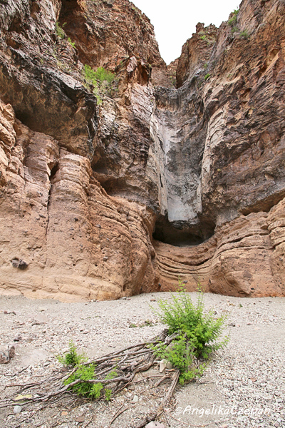 Der Weg führt durch ein breites Kiesbachbett in einen hohen Box Canyon. Er endet an einem 30 Meter hohen, glattpolierten Dryfall, über den im Sommer nach heftigen Regenfällen Sturzfluten als Wasserfall in die Tiefe stürzen.