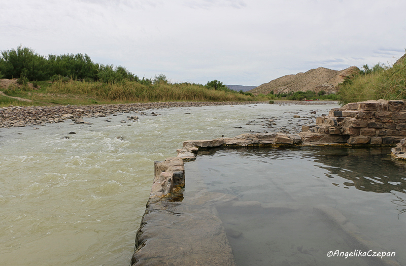 Für die Zufahrt zum Trailhead zweigt man kurz vor dem Río Grande Village von der Hauptstraße nach rechts ab auf eine 2 Meilen lange, ungeteerte Schotterpiste, die nach Süden führt und in der Nähe des Rio Grande endet (für Wohnmobile nicht geeignet!). Von hier sind es nochmals 0,5 Meilen Fußweg zu den heißen Quellen der Hot Springs. Hier, an der Einmündung des Tornillo Creek in den Río Grande unterhielt Anfang dieses Jahrhunderts ein Mann namens J.O. Sayford ein Heilbad. Die Ruinen des ehemaligen Badehauses sind noch zu sehen. In den Thermalquellen kann man baden.