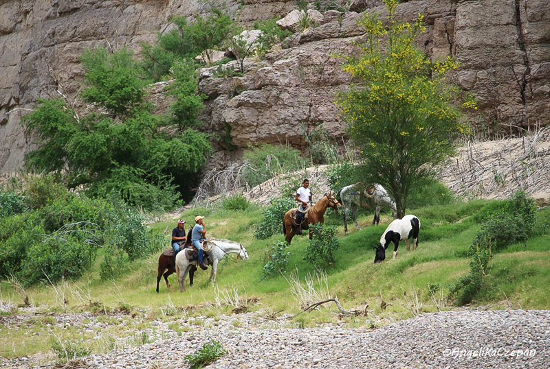 Während der Wanderung hat man immer wieder einen Blick auf das mexikanische Ufer des Rio Grande, wo Einwohner des mexikanischen Dörfchens Boquillas de Carmen einen kleinen Unterstand mit Pferden haben. Von dort rudern sie regelmäßig ans andere Ufer, um dort selbst gebastelte Mitbringsel wie Wanderstöcke oder Perlentiere zum Verkauf abzustellen. Das Geld dafür kann man in ein kleines Kästchen werfen.