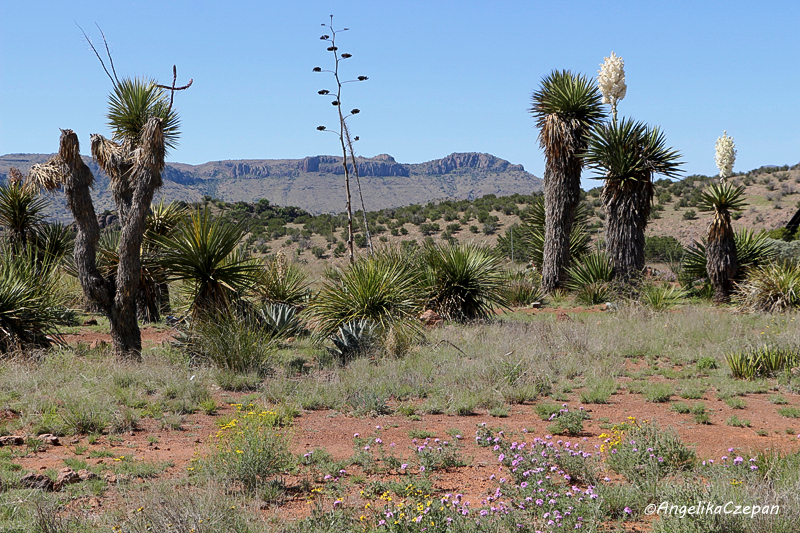 Erster Stopp ist das Powell Visitor Center, in dem sich eine kleine geologische Ausstellung mit Beschreibung der wichtigsten Berggipfel in den Davis Mountains befindet. Auf dem Außengelände schließt sich ein geologischer Lehrpfad an, die 'Geological Timeline' mit interessanten Gesteinsbrocken und Mineralien aus 2 Millionen Jahre Erdgeschichte der texanischen Trans-Pecos Region. Ein kurzer Fußweg führt dann vom Visitor Center zum Eingang des Desert Botanical Garden, in dem über 165 verschiedene Pflanzenarten der Chihuahua Desert zu sehen sind, darunter viele interessante Kakteen, Yukkas und Agaven. Lohnend ist auch der 0,3 Meilen lange Abstecher über den Hummingbird Trail zum Cactus Hill mit Sitzbank und schönem Ausblick auf die Wüstenlandschaft. Für diesen Rundgang sollte man etwa eine halbe Stunde einplanen.