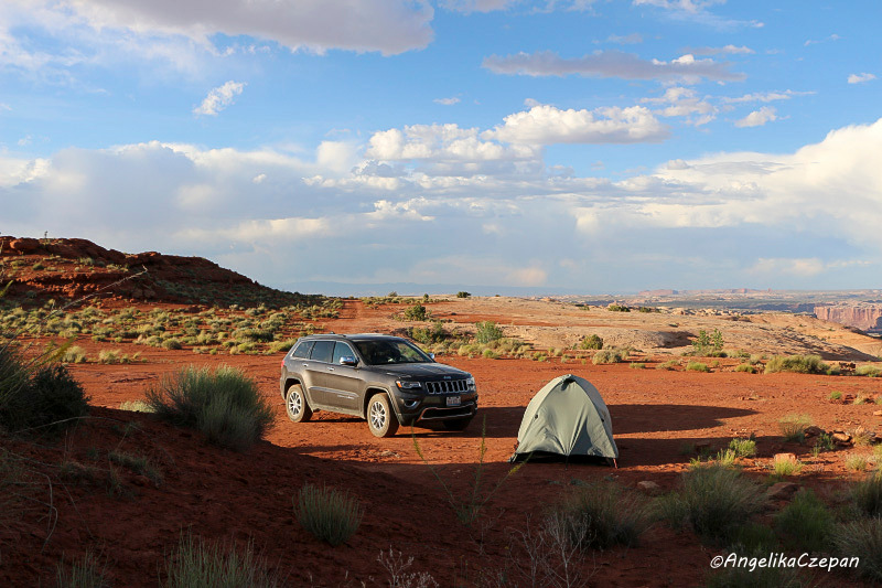 In der Nähe des Trailheads gibt es mehrere schöne Stellen, an denen man mit einem Zelt völlig abgeschieden in der Wildnis unter freiem Sternenhimmel übernachten kann. Die erste Möglichkeit hierfür bietet sich 0,4 Meilen oberhalb des Trailhead an der CR 1026, also kurz vor dem letzten schwierigen Stück der Zufahrtspiste. Diese Stelle bietet sich insbesondere dann an, wenn man vorhat, dieses letzte Stück hinunter zu Fuß zu gehen. Ein weiterer sehr schöner Campingspot, der auch etwas mehr windgeschützt ist und eine kleine Feuerstelle besitzt, befindet sich direkt am Trailhead. Fährt man von hier noch ein Stück geradeaus und links um die Felsen herum, findet man weitere schöne Zeltmöglichkeiten. Wer vor oder nach dieser Wanderung noch zum Horseshoe Canyon möchte, kann auch 10 Meilen weiter südlich am Einfachcampground des Nationalparkservice in der Nähe der Trailhead für die Wanderung zur Great Gallery übernachten.