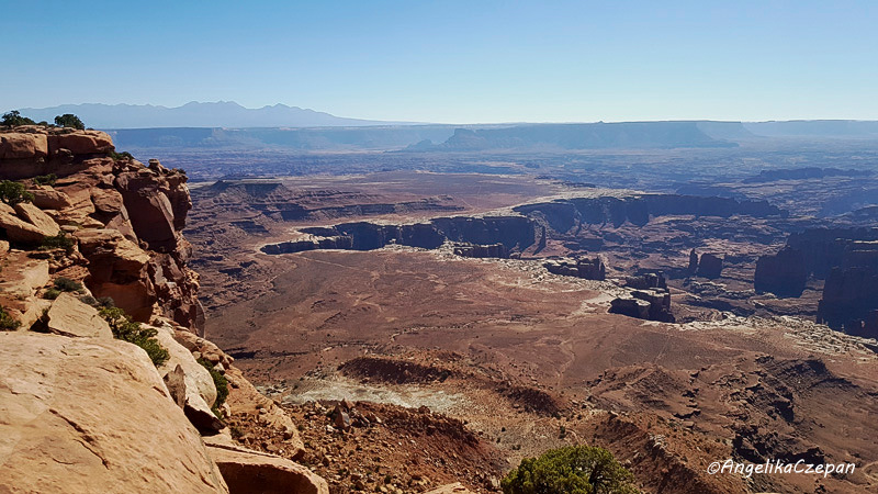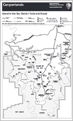Island in the Sky liegt nur wenige Meilen südwestlich von Moab und ist daher von den vier großen Bereichen des Canyonlands Nationalparks am leichtesten erreichbar. Charakteristisch für dieses Gebiet sind die gewaltigen Schluchten des Colorado und Green River, die sich hier in mehreren Stufen tief in die Felslandschaft eingegraben haben. Der Highway 313, ein geteerter 35 Meilen langer Scenic Drive, führt oben auf dem Canyonplateau entlang nach Süden bis zu einer Reihe von Aussichtspunkten auf die beiden großen Flüsse Green und Colorado River und die bis zu 100 Meilen entfernten Bergketten der LaSal, Abajo und Henry Mountains.