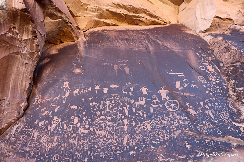 Bereits nach 12 Meilen erreicht man die noch nicht zum Nationalpark gehörende Newspaper Rock Archaeological Site, eine hohe Felswand, auf der im Laufe von 2.000 Jahren verschiedene Indianerstämme, Mexikaner und amerikanische Siedler ihre Felszeichnungen und -inschriften hinterlassen haben - ein beeindruckendes Zeugnis der amerikanischen Besiedlungsgeschichte.