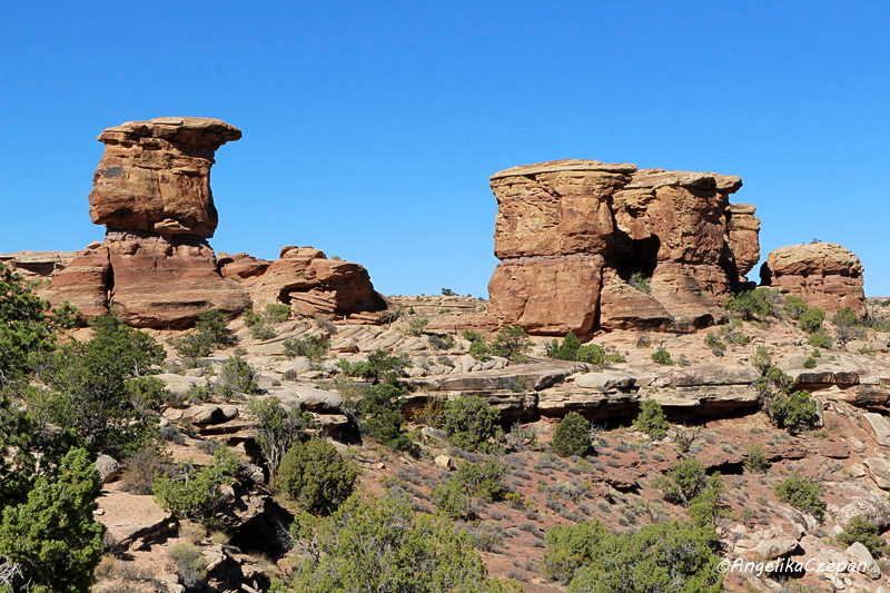 Der hübsche Nature Trail durchquert ein Gebiet mit kakteenbewachsenen Slickrockfelsen, in dessen zerfurchter Oberfläche sich bei Regenfällen das Wasser sammelt (potholes). Unterwegs hat man auch einen Blick auf die Needles, allerdings nur aus weiter Ferne.