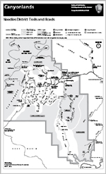 Der Needles District, ein weiterer großer Parkbereich der Canyonlands, befindet sich 75 Meilen von Moab entfernt und umfasst den südwestlichen Bereich des Parks. Ein Abstecher hierhin lohnt eigentlich nur, wenn man vorhat, ausgiebig zu wandern oder einen der Jeeptrails zu fahren, da das eigentliche Gebiet der Needles mit seinen charakteristischen Felsnadeln vom normalen Scenic Drive nicht durchquert wird. Außer einfachen Campingplätzen gibt es im Bereich der Needles auch keine Übernachtungsmöglichkeiten.