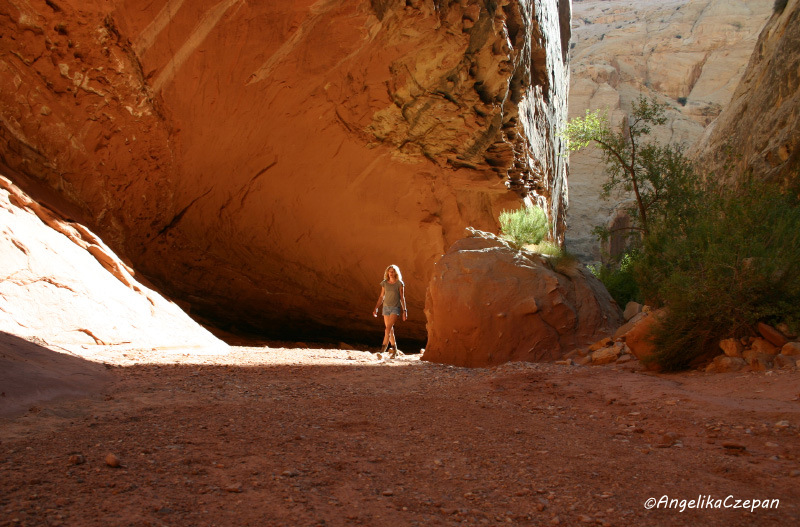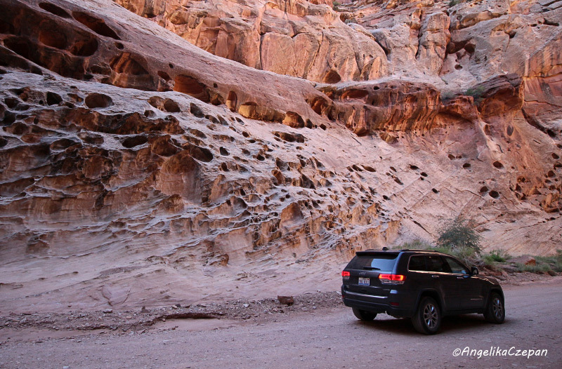 Von hier aus kann man zu Fuß weiter durch die Capitol Gorge zu mehreren wassergefüllten Potholes wandern oder hoch zum Golden Throne. Allerdings sollte man für diese Wanderungen schon möglichst früh morgens am Trailhead sein, da sich der Parkplatz immer recht schnell füllt. Der letzte Abschnitt des Scenic Drive durch die Capitol Gorge ist übrigens ungeteert und sollte aufgrund der Gefahr von Flash Floods bei länger andauernden Regenfällen oder drohenden Gewittern nicht mehr befahren werden.