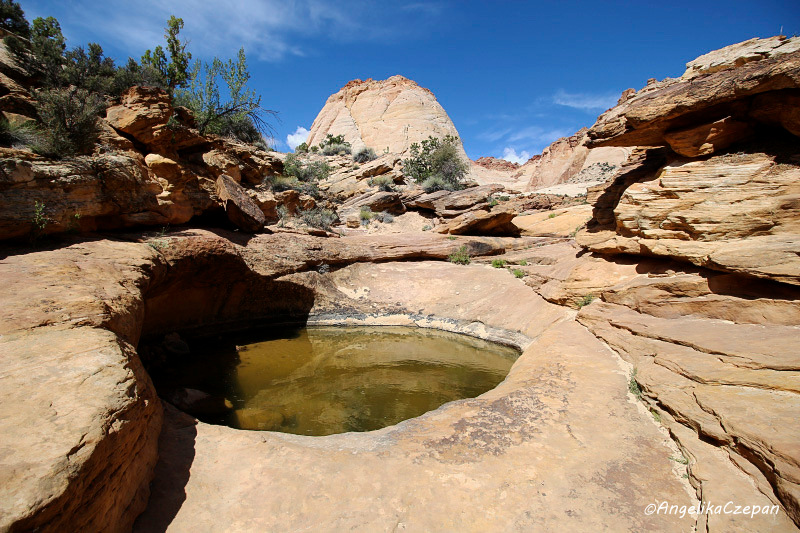 Der Weg dorthin ist landschaftlich äußerst abwechslungsreich und kurzweilig mit schönen Blicken hinunter in die Capitol Gorge und zu den mächtigen hellen Felsendomen, die hier ein eindrucksvolles Bergpanorama bilden. Etwas unterhalb des ersten Pools befindet sich auch ein kleiner Steinbogen. Da diese Kurzwanderung sehr beliebt ist, sollte man sie möglichst früh am Morgen beginnen.