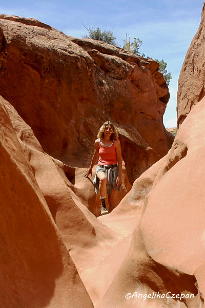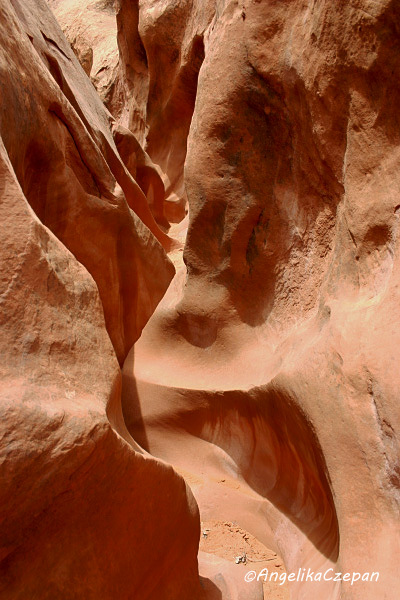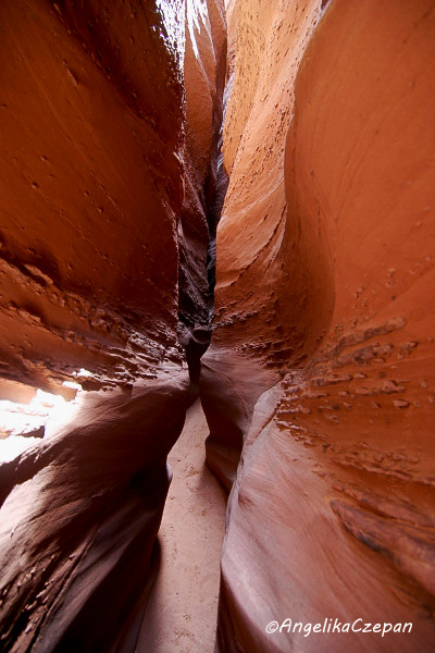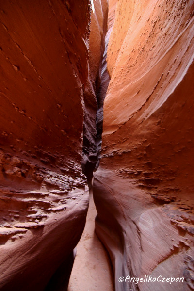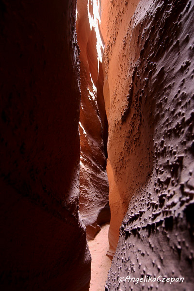 Hier sollte man ruhig ein wenig verweilen, denn dies ist der interessanteste und fotogenste Abschnitt des Pekaboo. Es folgen unzählige schmale Windungen und Spitzkehren - ein Streckenabschnitt, der besonders Kindern viel Spaß macht, denn hinter jeder Biegung, hinter jedem Felsvorsprung wartet wieder eine neue, interessante Entdeckung. Gegen Ende wird der Canyon dann langsam flacher und geht schließlich in einen Wash über (PEEK05).